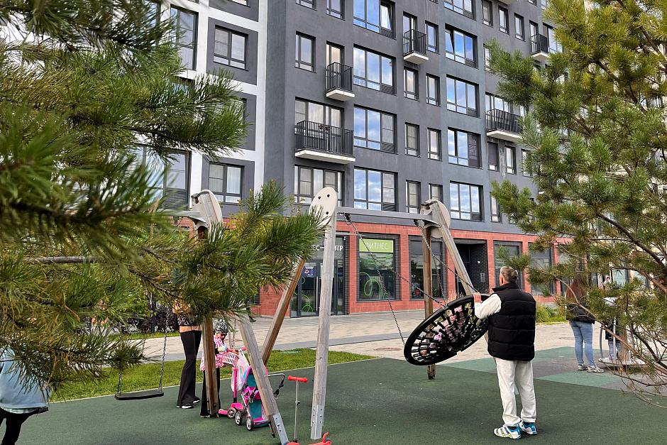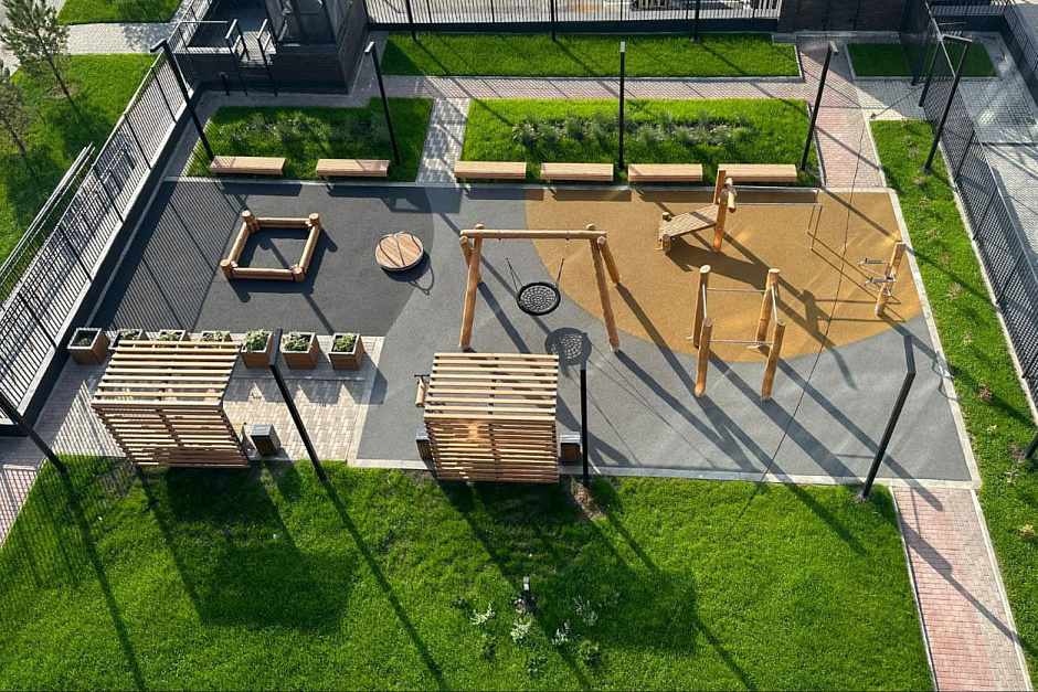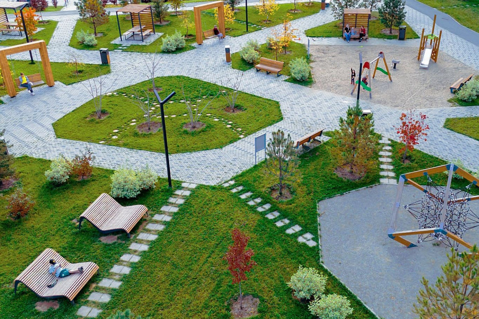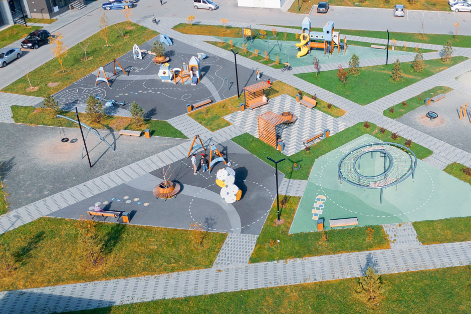 Дворы, где большую часть занимают спортивные и игровые комплексы, зеленые зоны для прогулок.