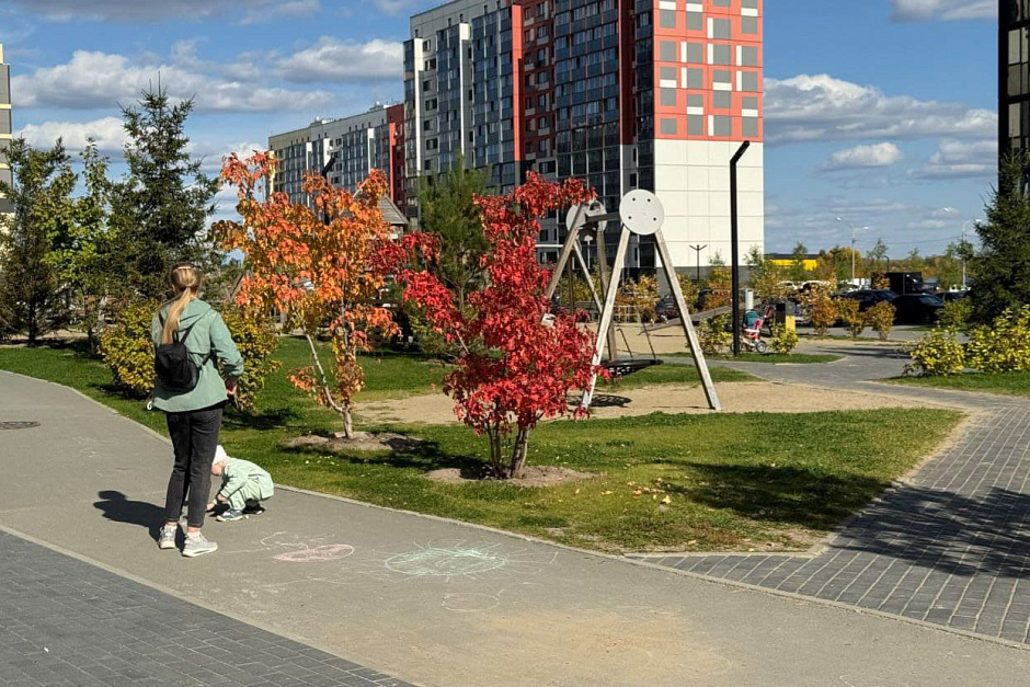 В Околице автомобили остаются за периметром. Это пространство с продуманным парковым озеленением: внутри только маршруты для неспешных прогулок с колясками, велодорожки, современные детские площадки и спортивные комплексы для тренировок на свежем воздухе.